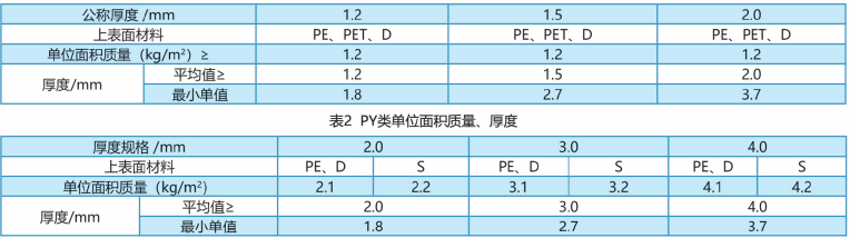 ★PY类按上表面材料分为聚乙烯膜(PE) 、细砂(S) 、无膜双面自粘(D)